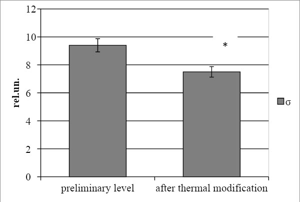The dielectric properties of tissues (permittivity - ε and conductivity - σ) were determined using original software and hardware complex for near-field resonant microwave sensing [2, 5]. The study of these parameters was performed at a depth of 5 mm, approximately comparable to the thickness of the analyzed tissue samples. Study of each piece of tissue was carried out twice – before and after thermal modification (at the conclusion of the exhibition period).