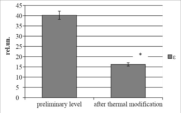 Figure 1. The dynamics of dielectric permittivity of biological samples under thermal modification; («*» - level of statistical value (p<0.05)