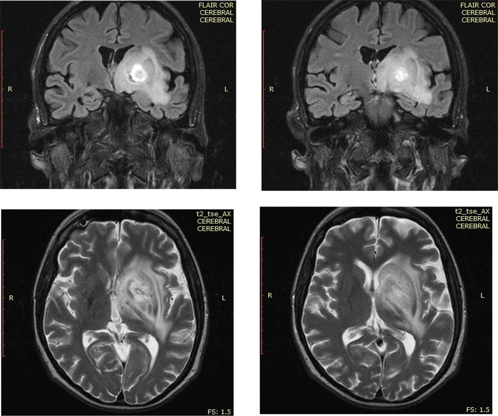 appearance of the cerebral MRI of the cerebrum tumor processe